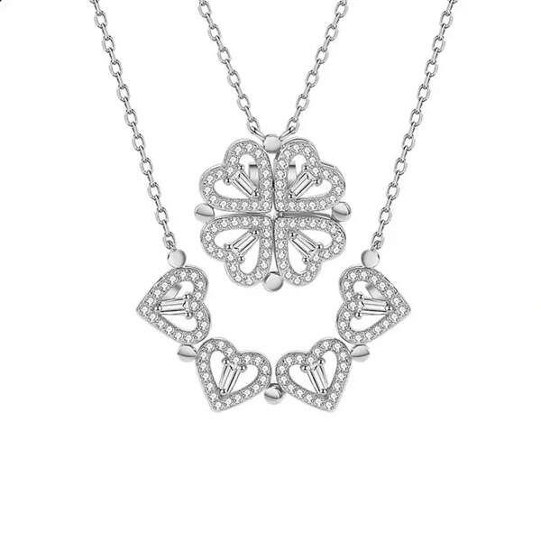 Švęskite meilę ir ypatingas progas su vėriniu su užburiančiais pakabukais. 4 širdelės virsta 4 lapų dobilo formos pakabuku 🍀